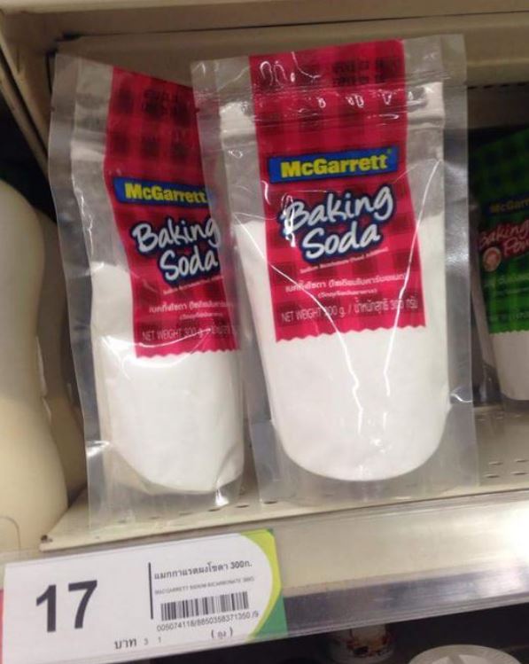 ผงฟู หรือเบกกิ้งโซดา มีขายทั่วไป ถุงละประมาณ 20 บาท