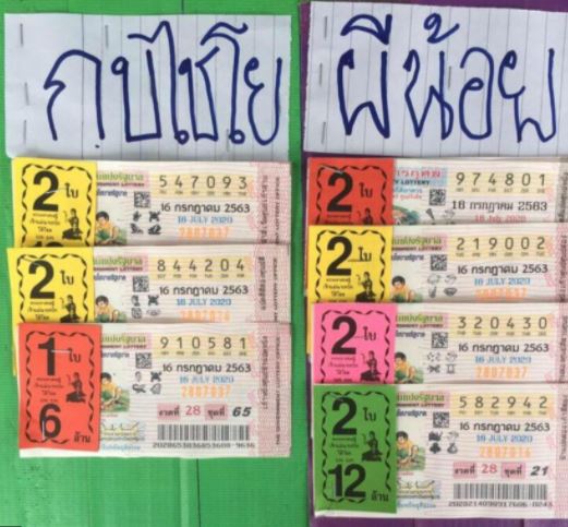 เชื่ อว่าหลังจากนี้ สลากฯที่มีรูปผีน้อย และกบไชโย คงจะหาซื้อยาก และมีราคาสูงมากขึ้นอย่างแน่นอน ใครลองแล้วประสบความสำเร็จก็ต้องมาบอกต่อกันหน่อยแล้วล่ะค่ะ
