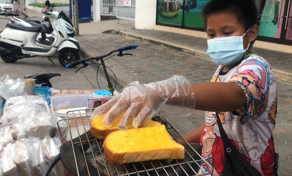 เ ด็กชาย 11 ขวบ ขายขนมปังปิ้ง ช่วยพ่อแม่