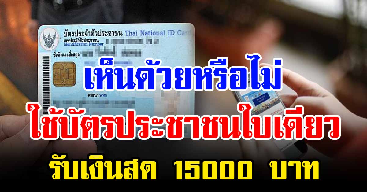 เฮ ทั้งประเทศ เสนอบั ตรประชาชนใบเดียวรับเ งิ น 15,000 บาท