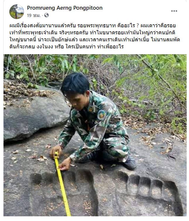 ล่าสุด ทางด้านผู้ใช้เฟสบุ๊ก Promrueng Aerng Pongpitoon ได้โพสต์สอบถามเกี่ยวกับประเด็นรอยพระพุทธบาท หรือ รอยเท้ าของพระพุทธเจ้า โดยระบุว่า