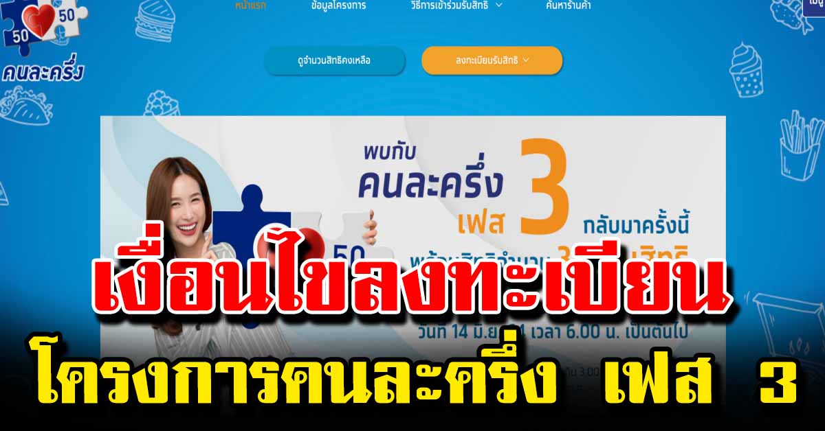 สามารถลงทะเบียนเข้าร่วมโครงการคนละครึ่ง ระยะที่ 3 ตั้งแต่วันที่ 14 มิถุนายน