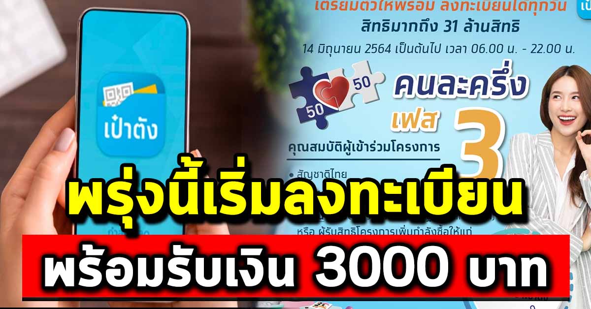 พรุ่งนี้เริ่มลงทะเบียน คนละครึ่งเฟส 3