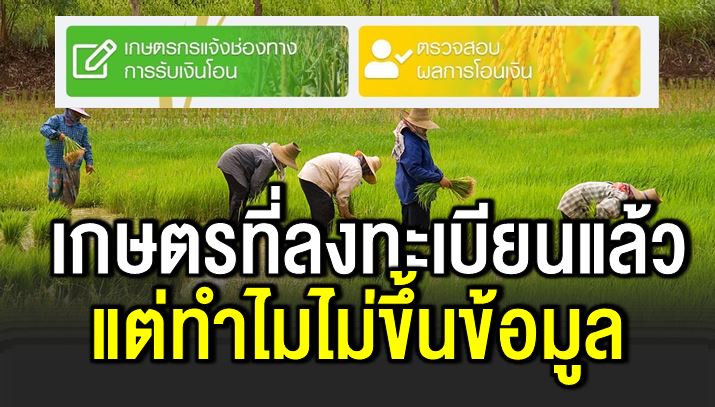 ธกส ตอบแล้ว เกษตรที่ลงทะเบียนแล้ว แต่ทำไมไ ม่ขึ้นข้อมูล