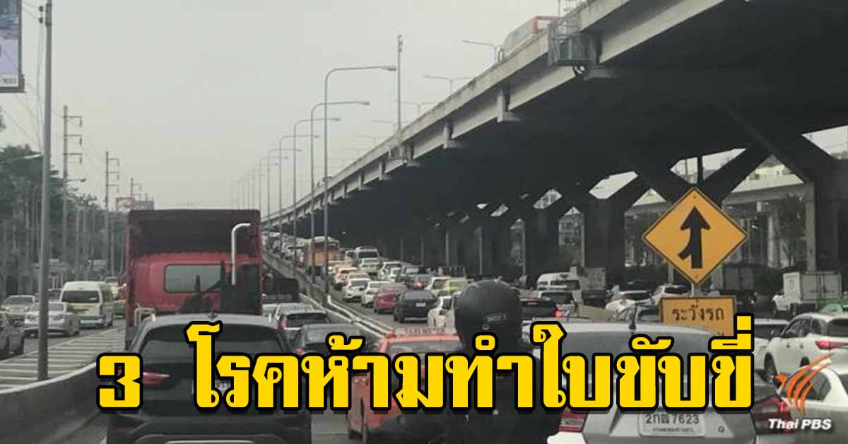 ขับรถหรือมีอาการผิดปกติทางจิต หรือมีโรคที่ไม่เหมาะสมกับการขับรถ เดิมกรมการขนส่งทางบก กำหนด 5 โรคต้องห้ามได้แก่