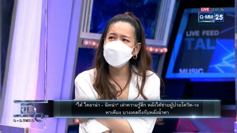 จากนั้น มีเสียงญาติผู้ป่วย ตอบกลับมาว่า ผู้ป่วยค่าออกซิเจนใน เลื อดขึ้นมา 56 แล้ว แต่ก็ยังอยู่ในขั้นวิกฤติ จน ได๋ ไม่ละความพย าย ามคุยโทรศัพท์ต่อ ด้วยน้ำเสียงสั่นคลอและพยายามกลั้นความรู้สึกไม่ให้น้ำตาไหลออกมา แต่ท้ายที่แล้ว เธอ ขอให้ทีมงานมาช่วยพูดคุยแทนต่อ เพราะ เป็นช่วงเวลาที่บีบหัวใจมาก