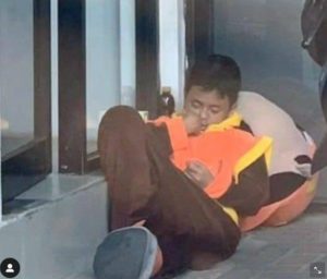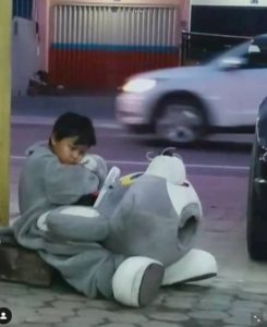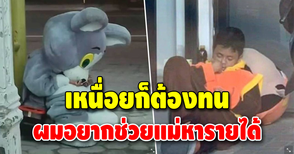 หนูน้อยวัย 9 ขวบ ใส่ ชุดมาสคอต ทำงาน ช่วยแม่หาเงิน ภาพที่ถูกนำเสนอโดยผู้ใช้อินสตาแกรมรายหนึ่ง ที่เห็นหนูน้อยพักผ่อนจากทำงาน