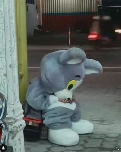 เขาใส่ชุดมาสคอตตัวการ์ตูนน เพื่อสร้างความบันเทิงให้กับผู้คน เพื่อแลกกับเงินค่าตอบแทนเล็ก ๆ น้อย ๆ ที่มีคนหยิบยื่นให้