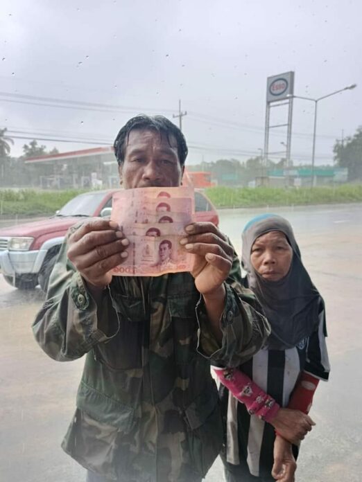 “โอ้โห! ผมขับรถมาเจอคู่รัก 2 คน เดินเคียงข้างท่ามกลางพายุฝนกระหน่ำแรงมากๆครับ ผมรีบจอดรถ ลงไปพูดคุย จึงรู้ว่า..เขาจะเดินกลับภาคอีสาน เห็นเขามีอาการหนาวสั่นมาก ซึ่งจากจุดนี้ที่ผมพบเจอ คืออยู่ภาคตะวันออก เลยให้เงินไว้ 500 บาท พอดีในรถผมเหลือ 500 ยังไม่ได้ไปกดตังค์ เพื่อจะไปแจกคนย าก ไ ร้ ทุกๆวัน ก็ให้ไป 500 บาท ทั้ง 2 คนรีบคุกเข่าลงไหว้เลย และผมก็ขอให้เค้าทั้งสองคน ไปเจอคนใจดีช่วยเหลือต่อไปครับ”
