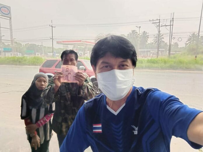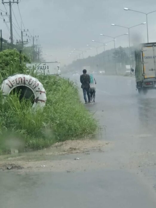คู่รักเดินฝ่าฝนหลายร้อยกิโลเมตร เพื่อกลับบ้านในภาคอีสาน สภาพอาการหนาวสั่นมาก เจอ ‘เชษฐ์ สไมล์บัฟฯ’ ช่วยถึงคุกเข่าไหว้ เมื่อมอบเงินให้ไป 500 บาท