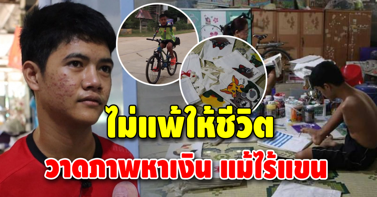 หนุ่มน้อยไร้แขนตั้งแต่เกิด ใช้เท้าวาดภาพ หาเงินส่งตัวเองเรียน