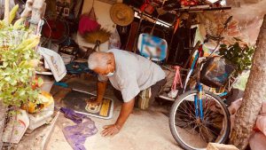 ตาต้องสู้ชีวิตลำพัง นอกจากจะออกไปเก็บขยะ ยังรับปะยางจักรยาน รับจ้างลับมีด หรือซ่อมแซมสิ่งของพอให้ได้เงินประทังชีวิตบ้าง