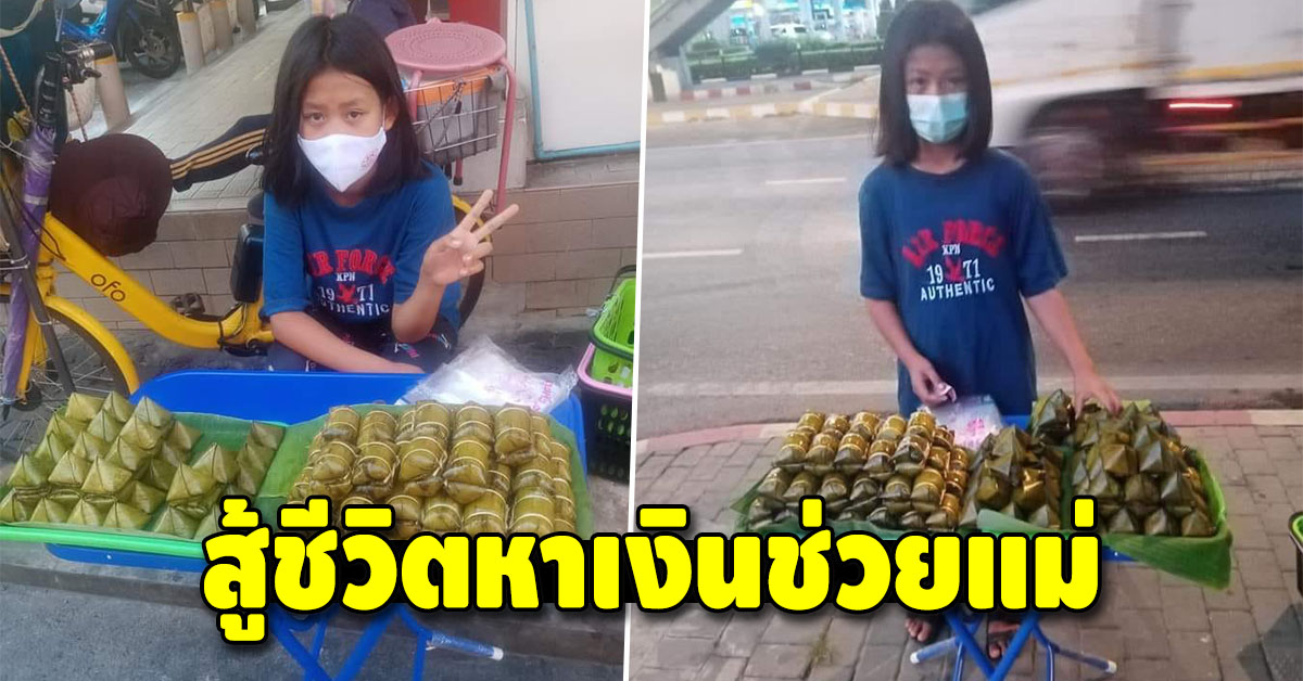 เด็กหญิงสู้ชีวิต ตื่นตี 5 ออกมาขๅยข้าวต้มมัดหาเงินจุนเจือครอบครัว