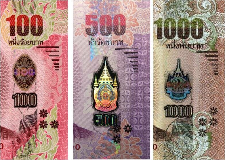 ธนบัตรแบบ 16 (ชนิดราคา 500 และ 1000 บาท ลายประดิษฐ์จะเปลี่ยนจากสีทองเป็นสีเขียวด้วย)
