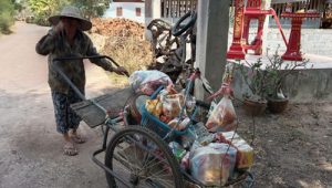 โดยในรถเข็นของคุณยายจะมีทั้งขนมและอาหารเเห้ง ลูกหลานทุกคนต่างเป็นห่วงอยากให้ยายอยู่บ้านเฉยๆ แต่ยายก็ไม่ฟัง ทั้งนี้เพื่อนบ้านต่างบอกว่ายายเป็นที่รักของคนในหมู่บ้าน