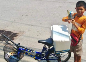 “น้องภูมิ” พ่อค้าไอติมตัวน้อย ใช้เวลาว่างขๅยไอติม หาเงินค่าเทอม เรื่องราวของน้องภูมิ เด็กชาย 10 ขวบ น้องภูมิใช้เวลาช่วงปิดเทอม ปั่นจักรยานขๅยไอศกรีม