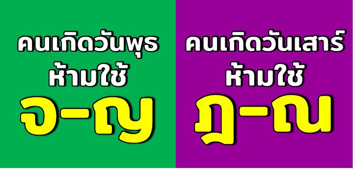 ตัวอักษรที่ควรเลี่ย งในชื่อของคนเกิดแต่ละวัน