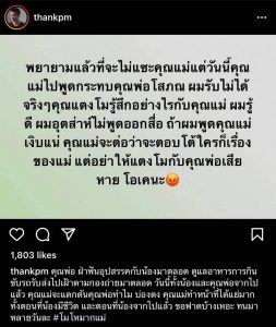เหมือนกับพ่อของแตงโม ก็เคยมีประวัติล้มละลายมาแล้วเช่นกัน จึงไม่ได้มองดูอดีต และยืนยันจะให้ทนายกฤษณะเป็นทนายความในคดีนี้ต่อไป งานนี้ แต๊งค์ พงศกร อดีตคนรักแตงโม ทนไม่ไหว จนต้องออกมาโพสต์
