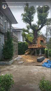 แถมพื้นที่บ้านก็กว้างได้ใจ มีพื้นที่สร้างบ้านต้นไม้ให้น้องสายฟ้า น้องพายุ ได้เข้าไปวิ่งเล่น รวมถึงพื้นที่ให้คุณแม่หนิง คุณแม่ของชมพู่ ปลูกผักปลอดสาร