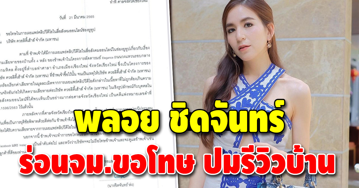 “พลอย ชิดจันทร์” ร่อนจดหมายขอโทษหลังรีวิวบ้านจนถูกฟ้อง นักแสดงสาวสวยที่ตอนนี้เป็นคุณแม่ลูก 4 ไป แล้ว และเมื่อไม่นานมานี้