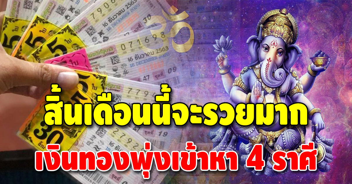 4 ลัคนาราศีดังกล่าว สิ้นเดือนนี้รวยมาก เงินทองพุ่งเข้าหา ชีวิตจะกลับมาปัง เพราะดวงชะตาของคุณจะโดดเด่นมากเป็นพิเศษ ดวงจะมีโชคลาภ หรือลาภลอยก้อนโต
