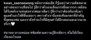 หลังจากพ่อเสีย ก็รู้เลยว่าความคิดหลายอย่างของเราเปลี่ยนไป รู้สึกว่าตัวเองแข็งแกร่งขึ้นมากกก เหมือนได้รับพลังงานส่งต่อจากพ่อมาเต็มๆ รู้สึกว่าเราต้องหันกลับมาดูแลตัวเองให้ดีขึ้นเยอะๆ เพราะตัวเรานี่แหละคือมรดกที่สำคัญที่สุดของพ่อ และเรายังทำอะไรที่มีคุณค่าได้อีกเยอะแยะมากมายจริงๆ