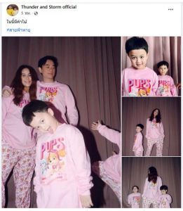 ก่อนหน้านี้ คุณแม่เคยบอกว่าชื่อลูกสาว เป็นชื่อที่ทุกคนต้องคาดไม่ถึงอย่างแน่นอน เมื่อ คุณแม่ คุณพ่อ และพี่น้องฝาแฝดใส่ชุดนอนสีชมพู พร้อมกับบอกว่า “ในนี้มีคำใบ้ #สายฟ้าพายุ”
