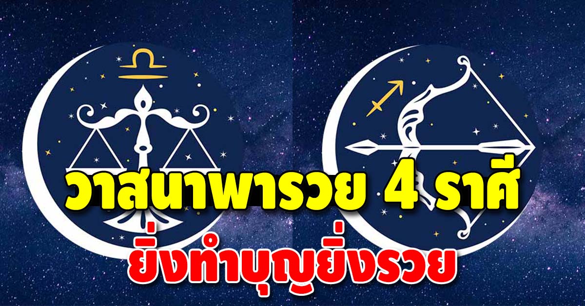 ดวงการเงินดี ดวงการงานปัง ชีวิตของคุณจะมีความมั่นคงมากยิ่งขึ้น  4 ราศี ช่วงนี้ชีวิตจะกลับมาปัง ยิ่งทำบุญยิ่งรวย ซึ่งได้แก่ราศีมังกร ราศีพฤษภ ราศีตุลย์ และราศีธนู