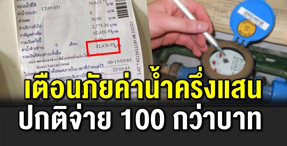 เตื อนภั ยค่าน้ำเกือบครึ่งแสน ปกติ 100 กว่าบาท