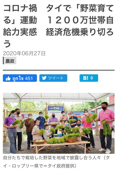 สื่อดังญี่ปุ่นสุดทึ่ ง ปฏิบัติการ Quick win 90 วัน ปลูกผักสวนครัว สร้างความมั่นคงทางอาหาร ของ พช. ชื่นชมคนไทยยึดหลักเศรษฐกิจพอเพียง พึ่งพาตัวเอง ผลักดันเกษตรก รรมยั่งยืน ร่วมใจฝ่าวิกฤตโควิด-19