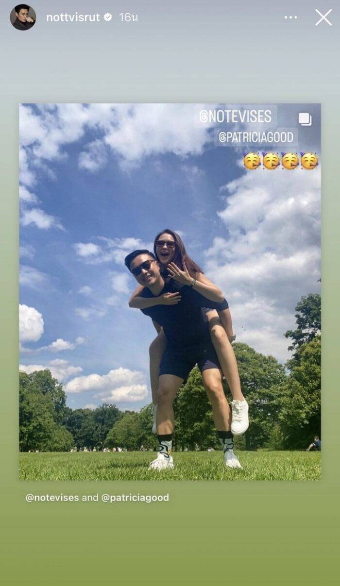 ขณะที่ เเพทริเซีย บินไปเที่ยวพักผ่อนพร้อมครอบครัว ที่ประเทศอังกฤษ ซึ่งโน้ตเองร่วมทริปดังกล่าวด้วย ท่ามกลางเพื่อนพ้องคนดังในวงการบันเทิง และแฟน ๆ ที่ต่างก็เข้ามาคอมเมนต์แสดงความยินดีกับทั้งคู่กันอย่างมากมาย
