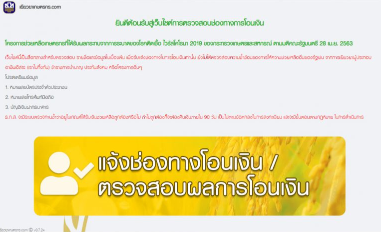 7. วันที่ 20 ก.ค.63โอนเงินเข้าบัญชีให้เกษตรกรประมาณ 1 ล้านราย