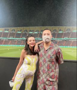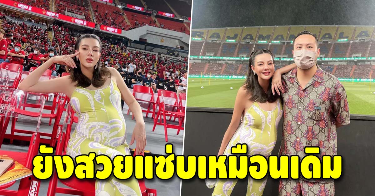 ล่าสุดว่าที่คุณแม่อย่างดิว อริสรา ได้เดินทางมาเชียร์บอล ถึงขอบสนาม งานนี้คุณแม่แต่งตัวแบบจัดเต็มในชุดคลุมท้องสุดแซ่บ