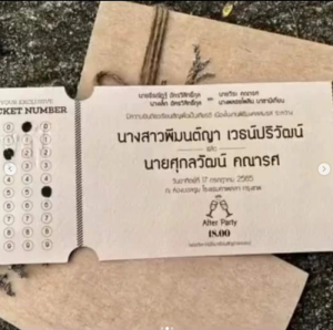 จากภาพ เวียร์ ได้มอบการ์ดเชิญพี่ผู้กำกับคนสนิท และเมื่อส่องที่ภาพก็จะเห็นการ์ดแต่งงานของ เวียร์-วิกกี้ ที่ถูกออกแบบไว้อย่างเรียบๆ