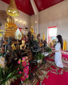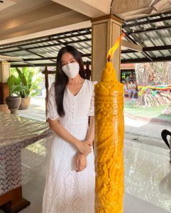 ล่าสุด เบลล่า ได้ออกมาโพสต์ภาพครอบครัวพร้อมระบุแคปชั่น “เข้าพรรษานี้ ได้พาแม่หนูมาถวายเทียนพรรษา