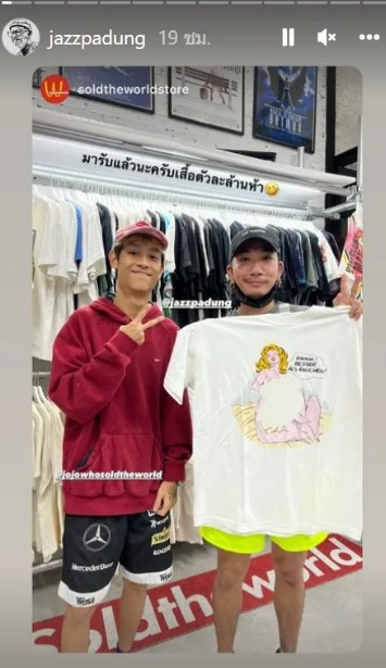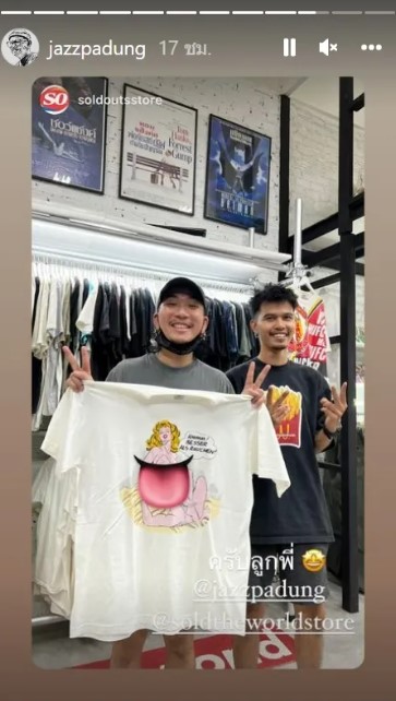 ล่าสุด แจ๊ส ชวนชื่น ได้ลงไอจีสตอรี่เป็นการไปรับสื้อยืดตัวละ 1.5 ล้านบาทที่ร้านเป็นที่เรียบร้อยแล้ว