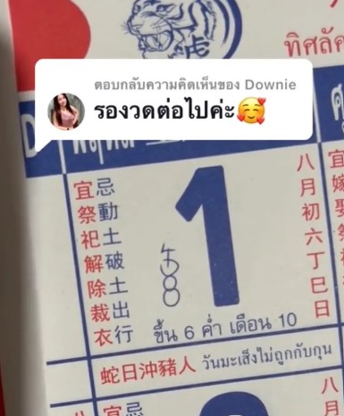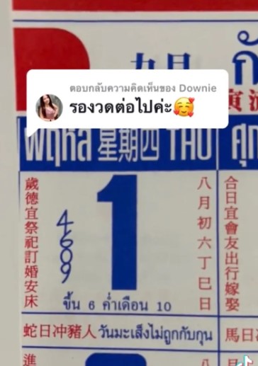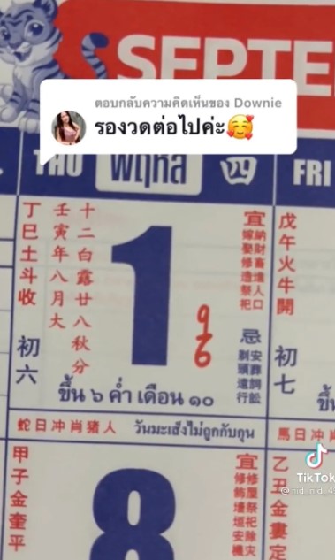 โดยผู้ใช้ TikTok บัญชี nid_nid_49 ได้โพสต์แบ่งปันแนวทางเลขเด็ ดจากปฏิทินจีนจำนวน 4 ฉบับ หลังจากที่มีผู้ที่เข้ามาคอมเมนต์รีวิวว่าได้โชคจากเลขปฏิทินจีนอยู่บ่อยครั้ง