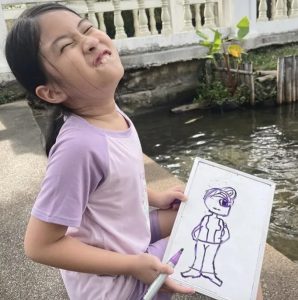 ล่าสุดทางด้านแม่เมย์ได้โพสต์ภาพ น้องมายู นั่งชิลริมน้ำอารมณ์ศิลปินมากๆ โชว์ภาพวาดคนลายเส้นคมมาก บอกเลยว่าฝีมือวาดรูปไม่ธรรมดาเลยจ้า