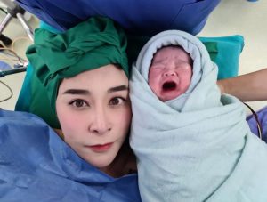 โดยทางด้าน ใหม่ สุคนธวา ได้โพสต์ภาพระบุข้อความว่า “สวัสดีค่ะ พี่ๆป้าๆลุงๆๆ fcทุกๆคน นู๋คลอดละจ้านู๋คลอด 11.29 วันที่ 29 ส.ค
