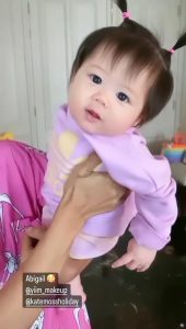 ล่าสุด ก็ได้มีการออกมาเผยคลิปน่ารักของน้องแอบิเกล ที่ครั้งนี้มาให้ผมทรงใหม่สุดน่ารัก ที่แม่ทำให้ เป็นทรงมัดจุก 2 ข้างอย่างน่ารัก