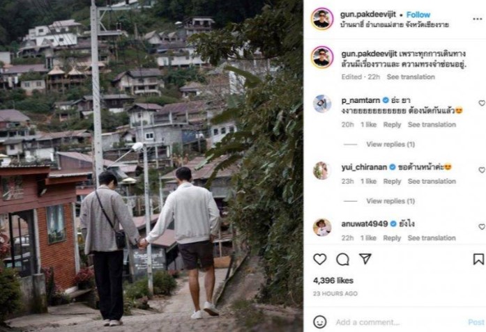 โดยกัญจน์โพสต์ภาพจับมือแฟนหนุ่มขณะเดินท่องเที่ยวที่บ้านผาฮี้ อ.แม่สาย จ.เชียงราย