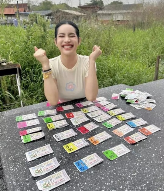 “เพิ่งตรวจเสร็จจาก 6 ร้อยใบ ถูก 2 ร้อยกว่าใบสามตัวหน้า สองตัว สามตัวหน้าดีใจมากที่สุด” ท่ามกลางความยินดีจากชาวเน็ตที่เข้ามาคอมเมนต์อย่างมากมาย
