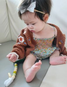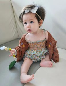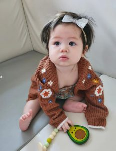 ทั้งยังเผยให้เห็นพัฒนาการที่มีเพิ่มขึ้นของน้องเกลอีกด้วย ที่ตอนนี้เริ่มนั่งเองได้แล้ว พร้อมกับส่งสายตาแป๋วทักทายพี่ๆ