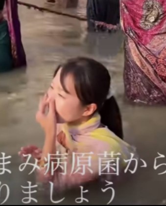 ซึ่งสาว เมกุมิ เล่าว่าเมื่อจุ่มศีรษะลงในน้ำ เธอได้เผลอสูดเอ าน้ำจากแม่น้ำคงคาเข้าไปทางจมูก จนเกิดอาการดังที่กล่าวมาข้างต้น