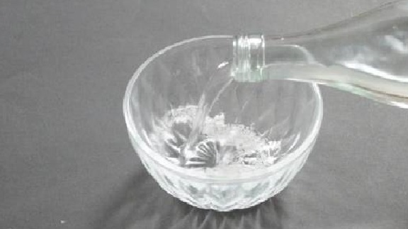 1 เอาน้ำตาลทรายมาผสมในถ้วยแล้วเทน้ำสะอาดตามลงไป ตามปริมาณที่เตรียมไว้แล้วคนให้น้ำตาลละลาย