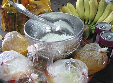 3 . ถ้าทำบุญด้วยข้าวสารเป็นกระสอบ หรือ ถมทราย ดิน ก็ตั้งจิตอ ธิษฐานว่า