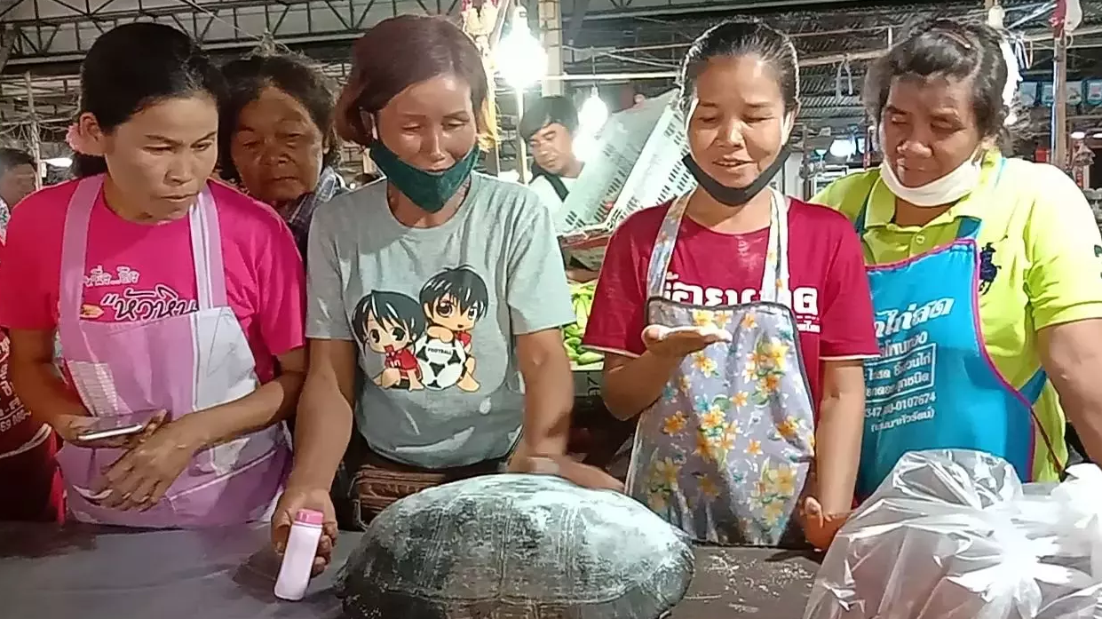 เต่ายั ก ษ์ เดินเข้า ตลา ด แม่ค้ าแ ห่พากันทาแป้ง หาเลขเด็ ด