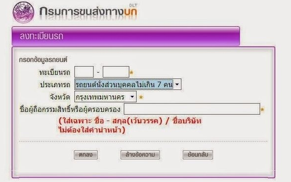 3. จัดการกรอกรายละเอียดของรถที่จะต่อภาษีให้เรียบร้อย อย่ าลืมตรวจสอบความถูกต้องทุกช่องด้วย