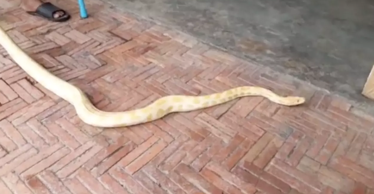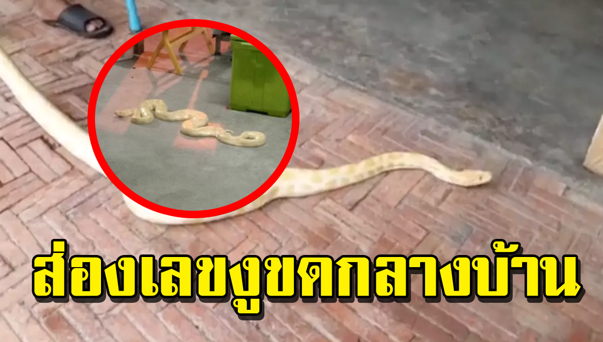 งูเหลือมสีทอง ขดอยู่กลางบ้าน คอหวยไม่พลาดส่องเลข