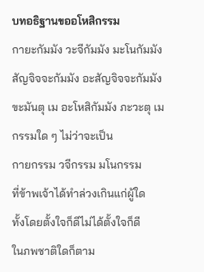 ตั้งใจอ่า นให้ดี แพทย์ ผ่ า ตั ด โร คหัวใจมือ 1 เล่าเรื่อ ง ประสบการณ์ขอขมา เจ้ากรร มนายเวรและบทขอขมา อโหสิกรร มว่า ปกติเป็นคนที่สวดมนต์ ไหว้พระก่อนนอนจะท่องเฉพาะบท “นโมตัสสะ ฯลฯ” กราบ 3ครั้งแล้วนอนเลย แต่เมื่อก่อนปีใหม่ได้หนังสือสวดมนต์มาก็เลยได้สวดบทขอขมาอโหสิกรร มเจ้ากรร มนายเวร ตอนสวดครั้งแรกก็ไม่คิดอะไรมากคิดแ ค่ว่าเป็นบทที่น่าสวดดีหลังจากสวดเสร็จ คืนนั้น